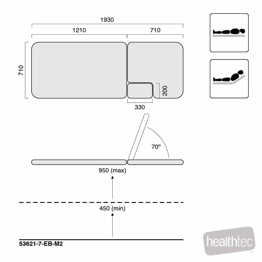This section table is standard with an electrically operated Back Rest that can be adjusted from flat to +70º enabling a comfortable seated or semi-reclined position for the patient and fill section to allow the table to be a full examination table when required.