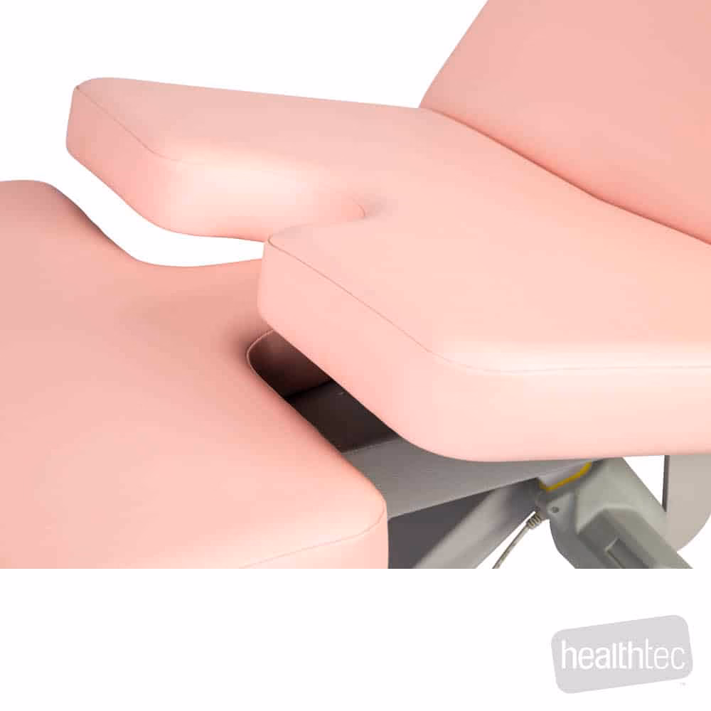 It also aids in the ease of manipulation of speculums. The manual backrest can be adjusted from flat to +70º enabling a comfortable seated or semi-reclined position. Gynae leg supports can also be fitted if required.